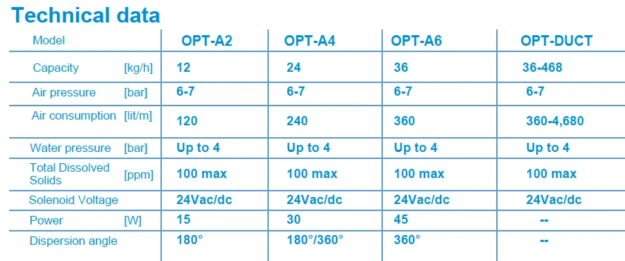 מערכת ערפול יבש המשתמשת בלחץ אוויר דחוס 6 BAR ומפזרת טיפות בגודל 2-4 מיקרומטר ובקיבולת של 6-360 kg/h